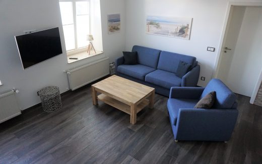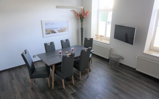 Die im Erdgeschoss befindliche Ferienwohnung ist gut über die große Eingangstreppe und den Hausflur zu betreten.